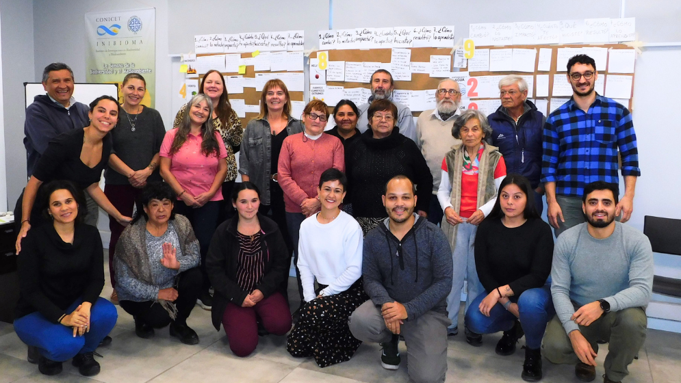 Taller realizado con horticultores de la feria en el INIBIOMA sobre cómo perciben los cambios socioambientales en sus huertas.
