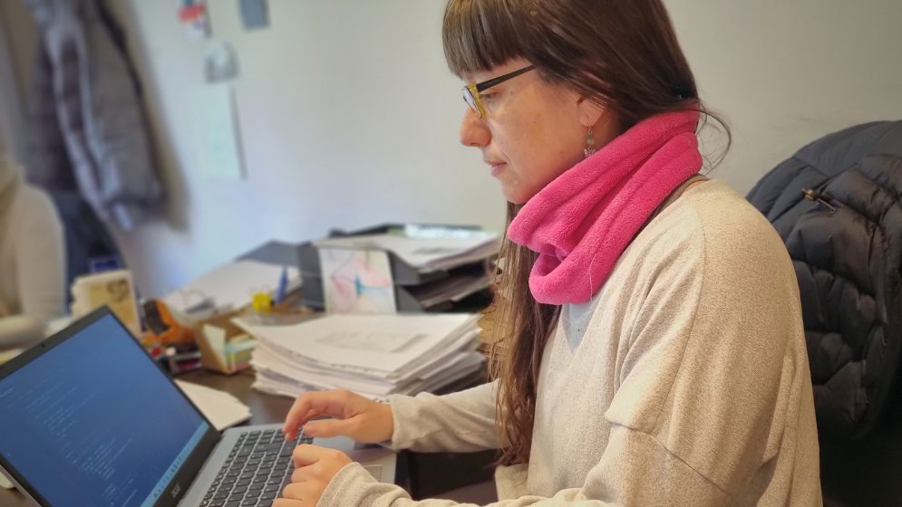 Laila Kazimierski trabaja en la computadora. Fotos: gentileza investigadora.
